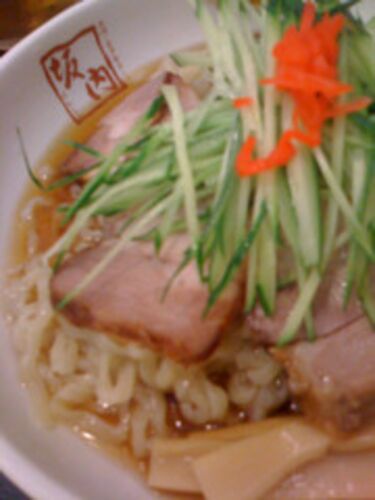時々よる坂内にて、中華風冷やしらーめん。酢をたっぷり回しかけて、さていただきます。 ズルズルズ……ッツごちそうさまでした。 えと、量がなんとも…… ま、こんな時間だし、いいかこれぐらいで。